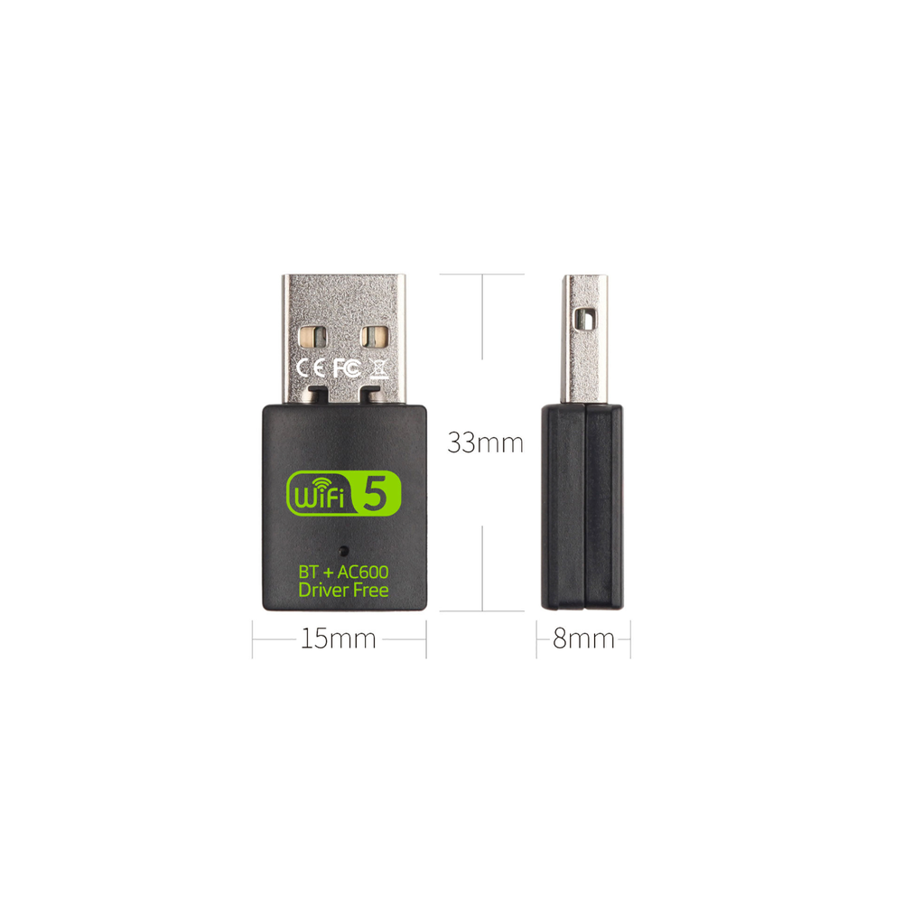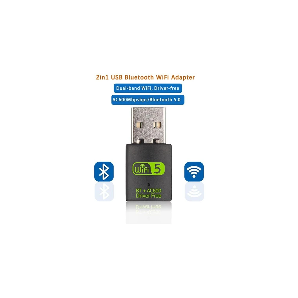 Dual Band AC600 USB WiFi Adapter with Bluetooth 5.0 600Mbps Wireless Dongle 2.4/5GHz